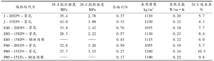 隨著EPS板厚度的增大,輕骨料混凝土復(fù)合隔熱磚抗壓強(qiáng)度、抗折強(qiáng)度降低,壓縮比增大,表觀密度,導(dǎo)熱系數(shù)降低,24h吸水率增大。EPS板的厚度宜控制在15-20mm范圍。