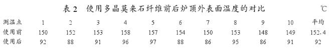 通過使用多晶莫來石纖維,可以取得一定的經(jīng)濟(jì)效益,而且在很大程度上改善了操作環(huán)境,同時(shí)對加熱爐爐頂也有一定的保護(hù)作用,可以延長其使用壽命。