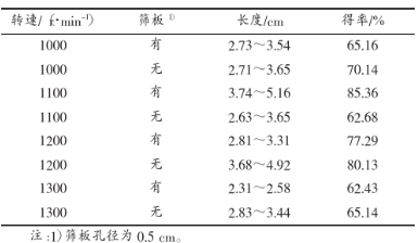 表2 打漿條件及打漿后纖維長(zhǎng)度和得率
