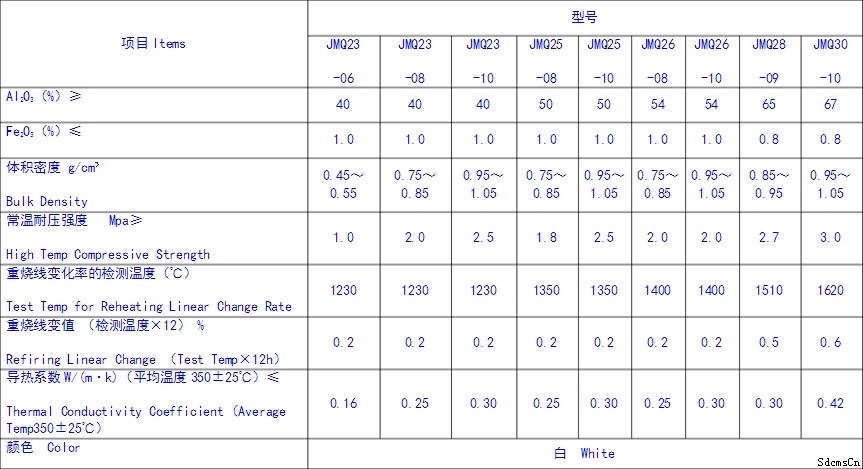 7. 常用常見輕質(zhì)保溫磚的理化指標(biāo)